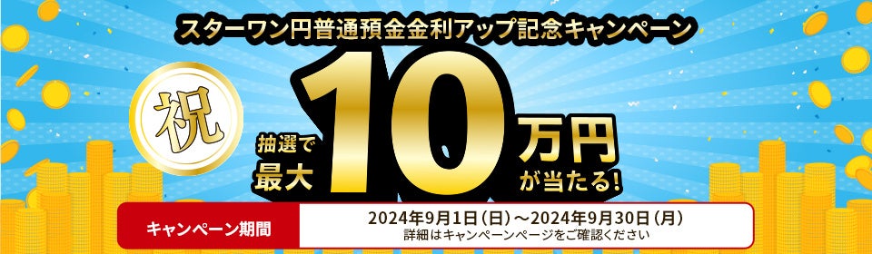 株式会社東京スター銀行のプレスリリース(2024年8月30日 16時40分)スターワン円普通預金の金利アップ記念キャンペーンを実施